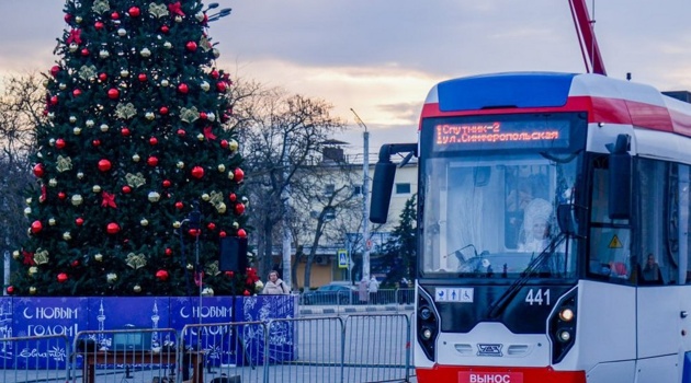 В Евпатории на маршруты городских трамваев вышли водители-Снегурочки