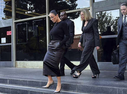 Модель Бьянка Цензори в облегающей юбке и кардигане пришла в суд