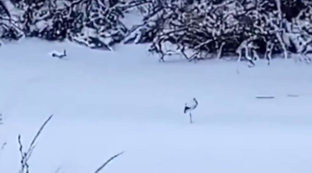 Под Перевозом вновь заметили аиста, который не улетел не юга и остался зимовать