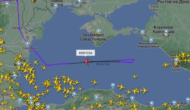 По данным сервиса, разведчик находится над Черным морем. Он летел в сторону Сочи, но на подлете развернулся и направился к Болгарии. Причины смены курса пока неизвестны.