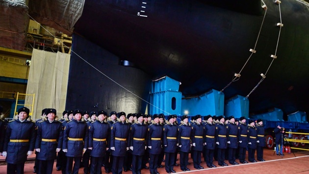 Шампанское из бутылки, что разбили в субботу, 3 февраля 2024 года, о кормовой стабилизатор подводного ракетоносца "Князь Пожарский", тут же обледенело. Но к этому не привыкать и морякам-подводникам, и тем, кто строит для них на Севере России боевые корабли.