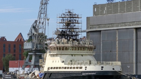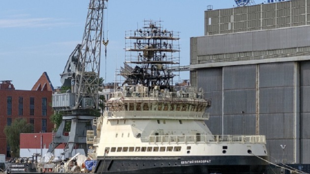 Газета «Известия» со ссылкой на свои источники сообщила о сдаче российскому ВМФ ледокола «Евпатий Коловрат» уже в июле.