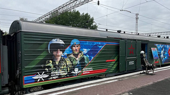 "Была проведена большая работа Министерством обороны РФ по формированию этого поезда. Были собраны уникальные экспонаты, которые здесь размещены и которые рассказывают не только о буднях Вооруженных сил Российской Федерации, но и о подвигах отдельных военнослужащих и целых воинских частей и соединений. Он показывает ту историческую эпоху, которую прошла наша страна в годы Великой Отечественной войны. А также показывает те экспонаты, которые сейчас Вооруженные силы Российской Федерации как бы "затрофеили" на полях сражений. То есть вы можете увидеть образцы трофейной техники вражеского производства, которые были уничтожены нашими воинами", - сказал журналистам руководитель акции генерал-майор Дмитрий Евмененко.