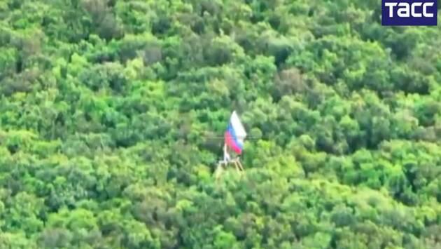 Беспилотник доставил флаг России в Херсон. Видеоролик, снятый бойцами группировки войск «Днепр», опубликован ТАСС.