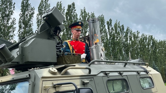 В церемонии приняли участие председатель курского городского совета ветеранов войны, труда, Вооруженных сил и правоохранительных органов Иван Малков и участник специальной военной операции Герой России Александр Данилов: они вместе зажгли лампаду с частицей пламени от Вечного огня, а затем военнослужащие перенесли лампаду к бронеавтомобилю.