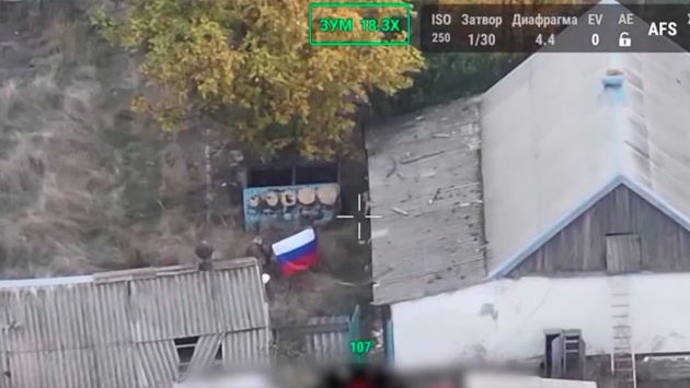 В финальной части видеозаписи камера дрона показывает жилые постройки, среди которых военнослужащие разворачивают российский флаг, что символизирует установление контроля над Нововасилевским.