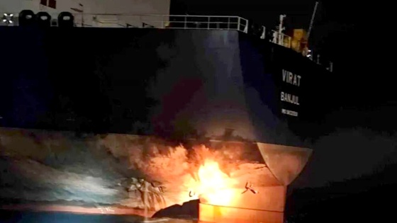 "Танкер Virat подвергся новой атаке утром в субботу с использованием безэкипажных морских катеров", - отмечается в заявлении ведомства, передает РИА Новости.
