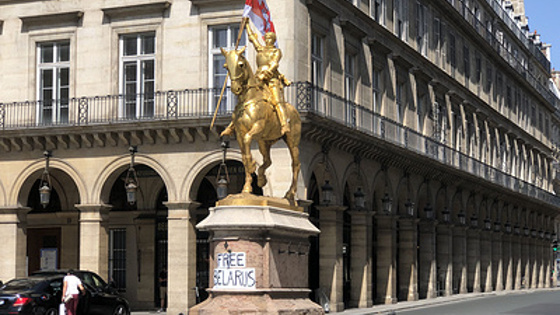 ПАРИЖ, 12 августа. /ТАСС/. Неизвестные повесили бело-красно-белый флаг, который является одним из исторических символов Белоруссии, на древке копья памятника Жанне д'Арк в Париже. Имя национальной героини Франции скрылось за белыми листками бумаги с надписью "Free Belarus" ("Свобода Белоруссии"), сообщает корреспондент ТАСС с места событий. Худощавый молодой француз, подошедший к корр. ТАСС в процессе съемки монумента, утверждал, что это он повесил в среду флаг, не согласовывая свою акцию с мэрией французской столицы, и пояснил, что таким образом он хотел поддержать своих родственников в Белоруссии. Бело-красно-белый флаг с гербом "Погоня" - один из исторических национальных символов Белоруссии. Он использовался в Белорусской Народной республике (1918-1919 гг.), а в первые годы независимости после распада СССР с 1991 до 1995 года был государственным флагом страны. В Белоруссии 9 августа прошли президентские выборы. По предварительным данным ЦИК, действующий глава государства Александр Лукашенко набрал 80,08% голосов. Светлана Тихановская заняла второе место, получив 10,09% голосов. После объявления результатов экзитполов вечером 9 августа в центре Минска и в некоторых других городах республики начались массовые акции протеста, которые переросли в столкновения с сотрудниками милиции. В результате были задержаны несколько тысяч человек, пострадали десятки стражей порядка и демонстрантов.