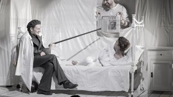 О новой работе Сергея Женовача в Студии театрального искусства начали говорить задолго до премьеры. Выпуска спектакля ждали долго. Гадали о причинах переноса премьерных дат, чем подогрели возросший интерес. О том, что спектакль претендует на "событие сезона", говорит один лишь факт, что в зале собрались глава Союза театральных деятелей, народные артисты и прочие публичные персоны. Роман Булгакова продолжает привлекать к себе внимание постановщиков во всем мире. Месяц назад о своем намерении заняться экранизацией "Мастера и Маргариты" рассказали американские продюсеры, в числе которых один из отцов-основателей фестиваля "Вудсток" Майкл Лэнг. Ни о сроках, ни об актерском составе пока ничего неизвестно. Но совершенно очевидно, что кинематографисты, а также театральные режиссеры не намерены признавать свое поражение перед литературным совершенством романа Булгакова. Интерес к нему подпитывают многочисленные аналитические труды, посвященные драматичной истории создания произведения, его ранним редакциям, философским идеям автора. Роман продолжает соблазнять своей полифонической сюжетной структурой, масштабными библейскими картинами и переосмыслением канонического образа Антихриста. Исследуя систему мотивов Булгакова, каждый из режиссеров, чьей профессиональной смелости хватило, чтобы взяться за этот литературный монумент, сталкивается с одной и той же проблемой – необходимостью определить и вывести на первый план ключевые события романа, дать им развернутое и ясное звучание, оттенить второстепенными, а иные оставить нетронутыми. Сергей Женовач, руководитель Студии театрального искусства, изначально отказался от иллюстрирования "Мастера и Маргариты". Для него первостепенной стала идея создания собственной истории. При этом в концептуальных решениях режиссер все же отталкивался от текста. Местом действия Женовач выбрал "дом скорби" – психиатрическую клинику, пациентами которой стали не только Мастер и Иван Бездомный, но и страдающий мучительными приступами мигрени Понтий Пилат, инфантильный Иешуа Га-Ноцри и единственный его ученик, тревожный Левий Матфей. Границы между эпохой римской Иудеи и Москвой начала XX века уничтожены. Кажется, Женовачу удалось разгадать тайну "пятого измерения", и по примеру Воланда он ужал Ершалаим, Патриаршие пруды, МАССОЛИТ до узкой больничной палаты. Можно было бы предположить, что главврач этого лазарета уставших душ – тот самый злой дух, но это не так. Кажется, только ему одному, загадочному посетителю этого богом забытого места и есть дело до томящихся узников. Мотив безумия в этой сценической версии романа – главенствующий. Если Мастеру и Бездомному больничные пижамы в пору, то появление Пилата среди пациентов необычно, хотя и объяснимо. Миссия, с которой Воланд посещает лечебницу, гуманная и даже терапевтическая – даровать покой тем, кто его заслужил. Алексей Вертков, лауреат "Золотой маски", в роли Воланда внешне напоминает самого автора романа и одновременно молодого Малкольма Макдауэлла. В этом сходстве, а также в его бесстрастности, противопоставленной общему безумию, есть что-то дьявольское. Трактовка образа во многом отвечает замыслу Булгакова, но в финале Женовач позволяет персонажу взять на себя чужие функции: Воланд сам сообщает возлюбленным о последнем путешеств