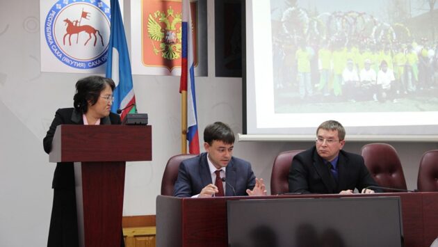 Во вторник, 11 апреля в рамках реализации основных юбилейных мероприятий, посвященных 385-летию вхождения Якутии в состав Российского государства, 95-летию образования ЯСССР и 25-летию Конституции Якутии с рабочим визитом посетил город Алдан исполняющий обязанности министра по развитию институтов гражданского общества Иван Луцкан. В конференц-зале администрации города Алдана было организовано проведение круглого стола по вопросам реализации государственной национальной политики. В мероприятии приняли участие заместитель главы МО «Алданский район», председатель районной комиссии по работе с религиозными организациями Игорь Сахно, благочинный православных церквей Алданского района, Отец Макарий, начальник Социального управления администрации МО «Алданский район», Ольга Молчанова, начальник отдела МКУ «Департамент образования МО «Алданский район», Елена Хрущ, начальник воспитательного отдела МКУ «Департамент образования МО «Алданский район», Светлана Вераксо, председатель общественной организации «Саха аймах», Галина Соловьева, заместитель председателя Алданского отделения общественного движения «Ассамблея народов Республики Саха (Якутия)», Любовь Белоус, заместитель председателя СО НКО по поддержки молодежи «Все в наших руках», Антон Ильин, педагог-психолог Центра социально-психологической поддержки семьи и молодежи, Ирина Чернакова, ответственный секретарь Консультативного межэтнического Совета при главе МО «Алданский район», Светлана Егорова, председатель общественной организации «Ассоциации эвенков Алдана «Сигун» Алданского района, представители Алданского районного отделения ЯРО Всесоюзного общественного движения «Матери России», специалисты по молодежной политике, по делам семьи и детства администрации МО «Алданский район», методической работе МКУ «Управление культуры и искусства Алданского района» и другие. Модератором выступил председатель районной комиссии по работе с религиозными организациями Игорь Сахно. Открывая работу «круглого стола» Игорь Васильевич поприветствовала участников заседания, и озвучил основные моменты программы государственной национальной политики. «В 2016 году у нас была принята муниципальная программа во исполнения стратегии по реализации государственной национальной политики по гармонизации межнациональных и межконфессиональных отношений. Данная программа у нас стоит из трех подпрограмм: это укрепление межэтнических и межрелигиозных отношений, поддержание коренных малочисленных народов Севера и поддержка районного казачьего общества. Одной из приоритетных наших задач является поддержание и сохранения гармонии межнациональных и межконфессиональных отношений между представителя различных национальных сообществ. Мониторинг нашего состояния межнациональной среды у нас ведется не только администрацией муниципального образования, но и совместно проводится с органами государственной власти, действующих на территории района, также с нашими общественными организациями. Это все проходит на уровне комиссии по работе с религиозными организациями, межэтнический Совет при главе района участвует и комиссия по профилактике обеспечению правопорядка на территории района», — рассказал замглавы. Продолжая тему заместителя главы, с презентацией выступ