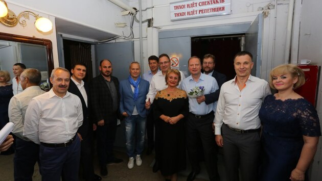 На основной сцене Театра музыкальной комедии в Ночь музыки прозвучали песни из советских кинофильмов. В начале программы в несвойственной ему роли солиста выступил лидер свердловских единороссов и вице-спикер Законодательного Собрания Свердловской области Виктор Шептий. Фото: Владимир Мартьянов Следом на сцену вышел ещё один самодеятельный артист - Вадим Дубичев, исполнивший "Темную ночь" Никиты Богословского из кинофильма "Два бойца". По фотографии и не угадать, что Вадим Рудольфович поёт. Фото: Владимир Мартьянов И хотя Вадим Рудольфович на сцене выглядел не так убедительно, как в политических боях, именно ему достался первый букет от благодарных зрителей. При этом надо заметить, что в большом зале Театра музкомедии свободные места можно было пересчитать по пальцам. Фото: Владимир Мартьянов