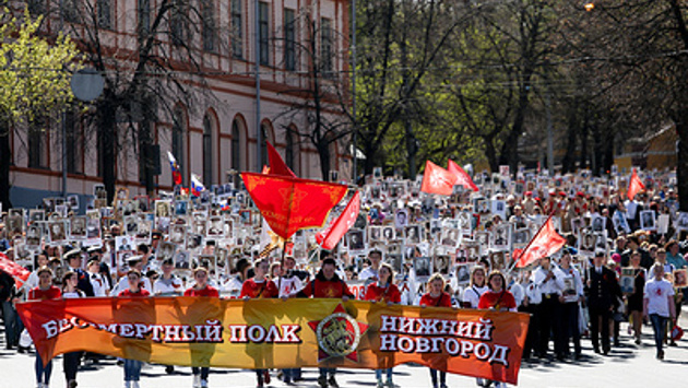 ТАСС, 9 мая. Большинство регионов Поволжья встретили 9 мая теплой солнечной погодой. Утром во многих городах округа прошли парады с участием современной и исторической военной техники, а позже на улицы вышли десятки тысяч людей - с портретами отцов, дедов, дальних родственников, которые отдали свои жизни за Великую Победу. В Нижнем Новгороде участниками парада впервые стали самолеты МиГ-31, в Казани к празднику восстановили технику времен войны, а в Соликамске участники акции "Бессмертный полк" пронесли портреты бывших осужденных Усольлага - участников Великой Отечественной войны. Танк 1941 года и новейшая техника Традиционно в большинстве городов День Победы начался с праздничного парада. Впервые во время парада в Нижнем Новгороде над акваторией реки Волга пролетели две пары самолетов МиГ-31 . "Это та же команда, которая принимает участие в воздушной части парада на Красной площади в Москве", - сообщила пресс-служба правительства региона. Ижевский электромеханический завод "Купол" на параде представил военную технику, выпускаемую на заводе в разные годы - артиллерийскую пушку времен войны и современные зенитно-ракетные комплексы ОСА и ТОР в двух видах - на колесном и гусеничном ходу. Колонну военной техники в Самаре в этом году возглавил легендарный танк Т-34 образца 1941 года. Впервые в параде участвовали четыре пикапа "УАЗ Патриот" с крупнокалиберными пулеметами "Корд", принятые на вооружение в российской армии с учетом сирийского опыта, а также пять бронеавтомобилей "Тигр-М СпН". "Изюминкой" парада в Казани в этом году стало прохождение техники военных лет, которую восстановили курсанты местного танкового училища. "Враги народа", ставшие героями Парад Победы в Перми успел пройти под весенним солнцем, а шествие "Бессмертного полка" прошло уже под дождем, но несмотря на непогоду, участие в акции приняли десятки тысяч жителей и гостей города. Первоклассник Александр Макаров пришел на парад с дедом и бабушкой. "Воспитанник 1 "Б" класса Пермского кадетского корпуса имени генералиссимуса Суворова Александр Макаров" - отчеканил малыш в военной форме, представляясь корреспонденту ТАСС. Он принес портрет своего прадеда Авенира Макарова. "Это французское имя", - пояснил он. Как оказалось, мама прадеда зачитывалась французскими романами, потому и назвала сына на французский манер. Прадед юного Александра родом из Горьковской области, после войны его семья была сослана в Пермь. "Мы немного переживали, что дождливая погода снизит явку, но штормовые предупреждения МЧС не остановили пермяков. Почтить подвиг дедов шествием пермского "Бессмертного полка" пришли больше 40 тыс. человек," - рассказала организатор акции Анна Отмахова. В шествии принял участие губернатор Пермского края Максим Решетников. Для 3-летней Златы это был уже третий "Бессмертный полк". Она прошествовала в полку с родителями и братом и несла портрет своего прадеда Трифона Селиверстова. Фамилию прадеда Злата выговорить пока не может, но знает, что он прошел всю войну. В "Бессмертном полку" прошли Алтынай и Батыр: их деды воевали в Белоруссии, после победы вернулись домой, в Киргизию, с медалями "За отвагу". В 1996 году, после развала Советского Союза, их семьи переехали в Пермь и приняли российское гражданство. "Неприятно, когда делят людей по национальностям. Наши деды воевали как един