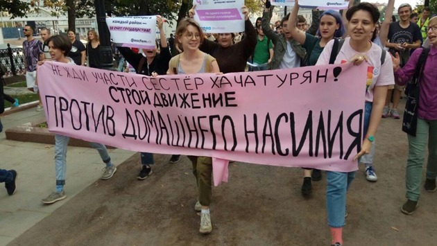 В Москве состоялся несогласованный марш в поддержку сестер Хачатурян, обвиняемых в убийстве отца. Об этом сообщается на странице «СоцФем Альтернативы» в Facebook.