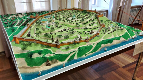 В центре внимания — еще один макет Нижегородского кремля. Его выполнил главный художник Казаковского предприятия художественных изделий Борис Тупичкин.