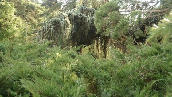 ...Ярко-желтые гроздья колючего вечнозеленого кустарника магонии падуболистной раскрасили зимний Никитский сад своими солнечными брызгами. Стойко держатся на стеблях даже бутоны роз, притягивают взгляд своей белизной соцветия мушмулы, пронзительно-тонким ароматом влекут к себе бело-лимонные венчики жимолости татарской и белые шарики снежноягодника. Добавьте к этой картинке миниатюрные цветы кустарника калины Фаррера, душистой декоративной саркококки и других удивительных растений. Зимний сад полон сюрпризов и щедро делится ими.