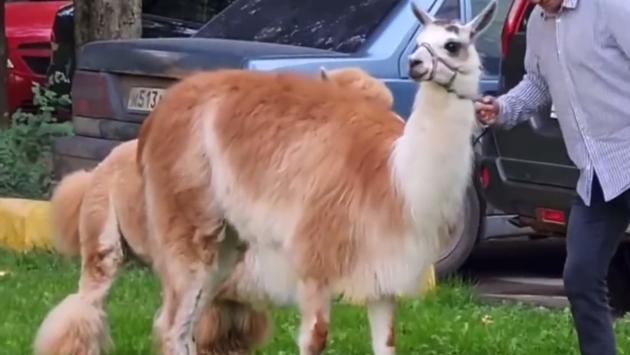 Выгуливающий альпака на поводке по Москве мужчина попал на видео