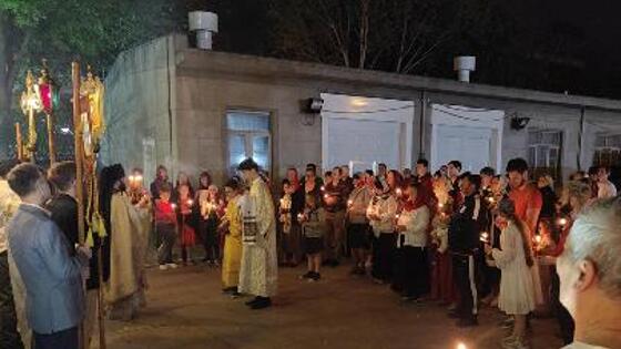 Пасхальное богослужение собрало в ночь с субботы на воскресенье в храме Успения Пресвятой Богородицы в Пекине православных многих стран.