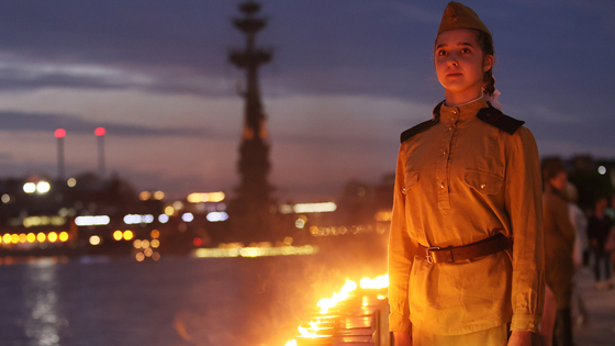 В разных городах РФ проводится акция «Свеча памяти» и объявляются минуты молчания, приспускаются государственные флаги, отменяются развлекательные мероприятия. Россияне приходят к мемориалам «Вечный огонь» и возлагают цветы.