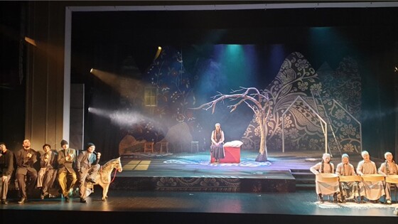 Всяк входящий в фойе "Ведогонь-Театра" окунался в предстоящую атмосферу армянской жизни. Общепринятые символы нации - плоды граната, рог для вина, сабли, куклы в национальных костюмах - колоритно украшали пространство, декорированное яблоками. Публике предлагалось повязать ленточки на древо желаний, сшить и смастерить яблочки из подручных материалов. Выглядело это мило и уютно. Яблок же в самом спектакле не оказалось. Название раскрылось только в последней реплике. Затейливо метафоричная цитата из мудрого древнеармянского эпоса прозвучала в финале долгой истрии: первое яблоко тому, кто увидел, второе - тому, кто рассказал и третье яблоко тому, кто поверил в добро. Фото автора. Армяне - это про жизнь. Определение, где-то прочитанное режиссером-постановщиком Татьяной Тарасовой, совпало с ее глубоким впечатлением от романа Наринэ Абгарян. Спектакль был пронизан национальным духом, но он, пожалуй, был условно-символическим фоном для повествования. Суть показанного заключалась в общечеловеческих смыслах, поиске величия в простых вещах. Житие-бытие односельчан в забытой Богом деревушке на плече горы Маниш-кара могло принадлежать любой народности. Но, безусловно, присутствие специфических деталей в постановке конкретизировало географию и особенности менталитета, украшая действо. Неповторимый привкус армянской жизни чувствовался на губах. 4-х часовая постановка, будто проведённый день в уцелевшем после землетрясения Маране, неспешно плела нити судеб почти столетней истории жителей местечка. Непереносимое горе и всепоглощающее счастье тысячами оттенков проживались артистами. Специи тонкой иронии и грубоватого юмора обильно приправляли сценические образы и ситуации. Фото автора. Армяне - поющая нация. С этим утверждением согласились режиссер и труппа. Постановка изобилует вокальным сопровождением, прошивая свои сценические узоры историй героев. Музыкальный руководитель Ольга Пелевина и Наталья Третьяк, репетитор и участник спектакля, проделали большую работу. Серьезная подготовка исполнения песен на армянском языке дали прекрасный результат. Артисты профессионально пропевали сольные и ансамблевые номера, красиво создавая эмоционально-настроенческий пласт общей партитуры премьеры. Художник Ольга Галицкая создала по-деревенски нарядную декорацию с ощущением выдраенных до блеска жилищ и домашней утвари Маранцев. Незамысловатый скарб окрашен красотой окружающей природы, надушен свежестями горных цветов и пряностями авелука, который собирают женщины. Фото автора. "Хэштеги" новой работы "Ведогонь-Театра" заложили в поисковики зрительских сердец ключевые слова человеческого существования - твёрдость духа, взаимопомощь, братская сплоченность и в энной степени любовь с нежностью. В роли деревенских жителей выступили артисты театра: Наталья Тимонина, Александр Бавтриков, Лилия Шайхитдинова, Илья Роговин, Павел Курочкин, Елена Шкурпело, Вячеслав Семеин, Марина Бутова, Аркадий Зяблов, Анастасия Мунина.