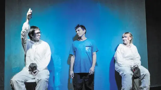 Les Partisans - театр независимый, и показы в Самаре организовали на площадке такого же независимого театра "Город". При этом приезд гостей стал возможен благодаря программе Министерства культуры РФ "Большие гастроли" (она открыта и для частных театров). В ижевской труппе играют только непрофессиональные актеры. Режиссер и основатель театра Павел Зорин обходится в своих спектаклях минималистичными выразительными средствами - пластика, свет, медиапроекция, самая простая сценография. При этом работает чаще всего с современной драматургией или поэзией. Открывал программу гастролей спектакль "Заходит андроид в бар" (16+) по фантастической пьесе Данилы Чекрыгина. Эллен (Инге Зорина), героиня не такого уж далекого будущего, сочиненного драматургом, покоряет Марс и заводит себе мужчину-андроида. Постепенно становится понятно, что она, скорее всего, вышла из того же 3D-принтера, что и Рори (Денис Назаров), и Эндрю (Тимофей Смагин) - новый робот, который приходит на смену устаревшей модели. Умеют ли роботы любить? Еще как, не хуже людей. И любовный треугольник в спектакле получается вполне себе достоверным - с постаревшим мужчиной-1 и новым дерзким мужчиной-2. Треугольник разрушит только уничтожение одного из участников, и совсем не того, от кого мы этого ждем. Павел Зорин - большой любитель фантастических миров, и не случайно выбрал пьесу Чекрыгина. Фантастики на конкурсы драматургии приходит не так уж мало, но немногим авторам удается не только придумать свою вселенную, но и поместить в нее интересно разработанную историю. Материалом для другого, самого свежего спектакля Les Partisans "Сердце ромеев" (16+) стали стихи Федора Сваровского. Их герои тоже оказываются в будущем, причем в совсем небезобидном. Это мир после какой-то катастрофы, возможно, очередной мировой войны. Опасный постапокалиптический мир когда-то безопасных улиц, мир оружия, предательства, старых ран и вояк-ветеранов, тоскующих по былым сражениям. Мир, в котором одна учительница, издеваясь над учеником, может запустить цепь событий, в конце которой в живых на Земле останутся только роботы. Стихи Сваровского - научно-фантастическая поэзия с человеческим измерением, не самый простой материал для "бедного" театра и для актеров-любителей. Труппа достойно справляется с задачей, но все же заметно, что спектакль еще совсем свежий, не "наигранный". Особенно на фоне другой вещи, оставленной на этих гастролях "на десерт". Это самый известный спектакль ижевской труппы - "Деликатес. Удмуртская история преступлений" (18+), участник программы "Маска Плюс" 2019 года. Здесь уже мир на сцене оказывается на противоположном от фантастического полюсе. Пьеса написана ижевским драматургом Михаилом Соловьевым (он, как и закадровый герой спектакля, работает следователем) по следам реальных историй. Острохарактерные персонажи, ярко сыгранные актерами Les Partisans - кривоватые, странноватые недотепы, убившие своих родственников, возлюбленных или соперников ни за что ни про что, кажется, просто от нечего делать. Несмотря на страшную тему, в тексте много комического, и взгляд следователя/автора на своих героев исполнен не столько осуждения, сколько изумления и сочувствия. Так жить нельзя, но для этих людей это тоже жизнь, со своими удачами и разочарованиями, страстями и мечтами. Это очень драйвовый спектакль с монологами-допр