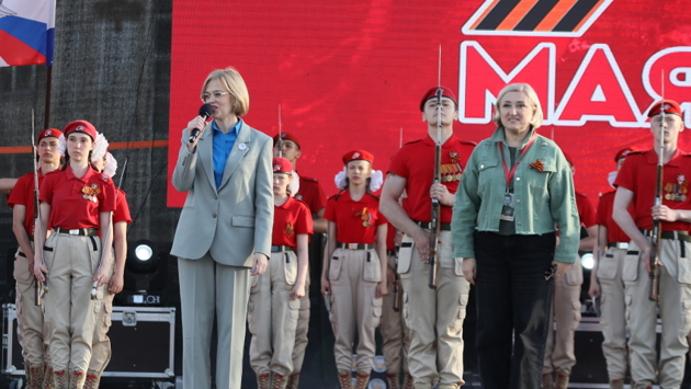 «Наша страна - победитель. Мы доказывали это тогда, мы докажем это и сейчас. Нет в нашей стране семьи, которая бы равнодушно относилась к этой дате. Этот праздник со слезами на глазах. Победа ковалась везде, и на фронте, и в тылу. Чита – город трудовой доблести, внесший огромный вклад в победу. Сегодня мы тоже вносим свой вклад в ту победу, которая будет скоро. Победа точно будет за нами. С праздником, дорогие забайкальцы!», - сказала Виктория Бессонова. Песня «Родина-мать» в исполнении «Забайкальских узоров» и «Забайкальских казаков» открывает праздничный концерт в честь Великой Победы. Певец Григорий Лепс представил ее 22 февраля прошлого года на митинг-концерте «Слава защитникам Отечества», за это время она стала поистине народной. А в это время площадь Ленина в Чите перенеслась в начало лета 1941 года. Мирное советское время, жизнь шла своим чередом. В один миг все оборвалось. 22 июня 1941 года из репродукторов прозвучал голос Левитана — сообщение о вторжении войск фашистской Германии и объявление о начале Великой Отечественной войны.«Идёт война, вставай, страна!» - звучит со сцены площади Ленина как новая интерпретация знаменитой «Вставай, страна огромная». Миллионы советских людей шли с нею в бой, она стала призывным набатом, её слышал и фронт, и тыл, она дала огромную силу защитникам Родины.К выступлению присоединились народы Забайкалья, показывая единство жителей страны перед лицом врага, а зрители действительно встали.«А для тебя, родная, есть почта полевая!»На сцене - зажигательная солдатская плясовая! Артисты ансамбля «Забайкальские казаки» выводят те самые знаменитые в народных танцах движения - «ковырялочку», «веревочку», притопы на правую и левую ногу, «ползунок».Забайкальцам со сцены площади Ленина показали один из самых трагичных этапов Великой Отечественной войны - блокаду Ленинграда, жители которого мужественно выдержали 872 дня.Война глазами детей, кадры видеохроники тех страшных дней и фото дневника Тани Савичевой - школьницы, которая с начала блокады города начала вести записи, которые позже назовут летописью смерти.Всего девять кратких записей, на шести из них даты, когда умерли близкие девочки — мама, бабушка, сестра, брат, а в конце - «Осталась одна Таня»...«Я говорю: нас, граждан Ленинграда,не поколеблет грохот канонад,и если завтра будут баррикады-мы не покинем наших баррикад», - звучит стихотворение поэтессы Ольги Берггольц - блокадной музы Ленинграда.И русский народ выстоял! Пережил все ужасы блокады, сплотился ради нашего общего будущего. Отстояли Ленинград! Отстояли Россию! Отстояли мир!Ты же выжил, солдат! Хоть сто раз умирал.Хоть друзей хоронил и хоть насмерть стоял.Почему же ты замер — на сердце ладоньИ в глазах, как в ручьях, отразился огонь?Звучат слова советских солдат из окопов, с полей сражений. Проникновенно. Мощно. До мурашек. Победа ковалась общими силами советского народа, но именно там - под пулями - советский солдат с верой в светлое будущее шел в бой.Память защитников Отечества почтили минутой молчания.Актёры театрализованного представления в Чите обратились к матерям и жëнам участников СВО«Среди почетных гостей - особенные женщины. Те, чьи мужья, сыновья находятся на специальной военной операции. Это мамы, невесты, жены наших бойцов. Поприветствуем самых стойких, самых терпеливых! Вы как никт