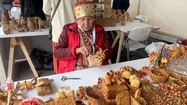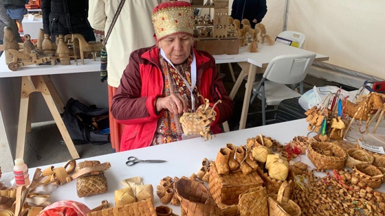 Участники праздника смогли увидеть настоящие чудеса из дерева - например, деревянный самовар, заварной чайник и чашки, вазу и супницу. Эти удивительные произведения сплел из сосновых корней Владимир Максимов, мастер из древнего поморского села Умбы в Мурманской области. По его словам, над самоваром со всеми заготовками он трудился два месяца. Любопытно, что корни он добывает в местном песчаном карьере, где остались пни от спиленных сосен. Деревья перестали существовать очень давно, пни потемнели от старости, но их корни продолжают оставаться живыми.
