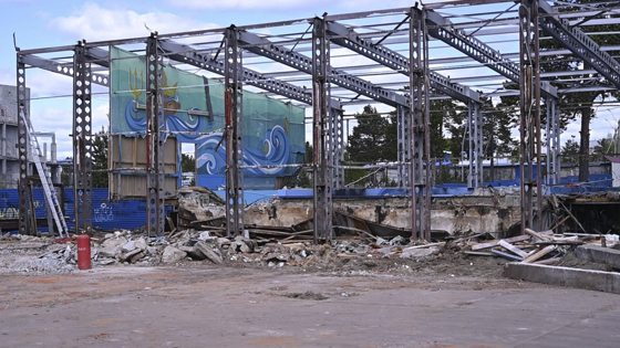 В Ноябрьске сносят аварийную часть спорткомплекса «Атлант»