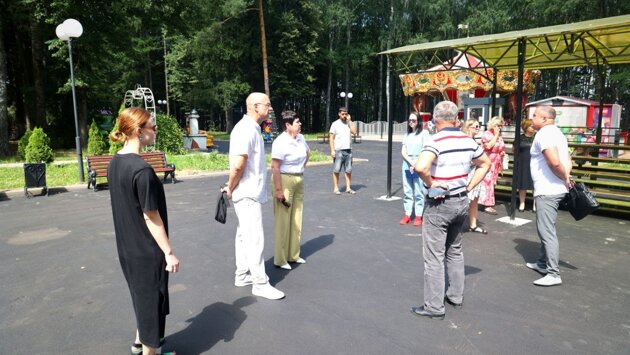 Временно исполняющий полномочия главы Волоколамского городского округа Наталья Козлова вместе со своими заместителями Сергеем Шорниковым и Мариной Марновой, исполняющим обязанности директора городского парка Игорем Гомозовым, председателем общественного Совета городского парка Олегом Смирновым, представителями подрядной организации и депутатского корпуса округа проверили выполненные работы.