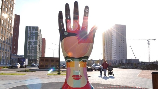 В квартале "Олимпика" Академического района Екатеринбурга появился новый арт-объект – на прогулочной зоне там установили авторскую инсталляцию "Рука художника" от урбаниста Юрия Берестова.