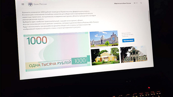 Продолжается онлайн-голосование за выбор нового дизайна купюры номиналом в 1000 рублей. Банкнота посвящена Приволжскому федеральному округу. На ее лицевой стороне будет изображен Нижний Новгород. В список для голосования по выбору символов для оборотной стороны банкноты вошли известные памятники, исторические и современные здания, объекты культурного наследия разных регионов округа.