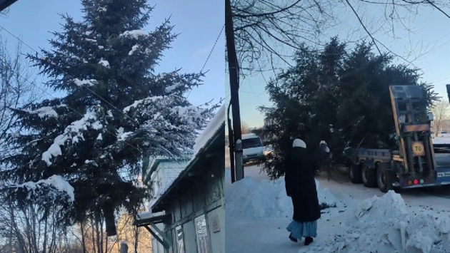 Жители Шимановска раскритиковали чиновников за срубленную у музея ель