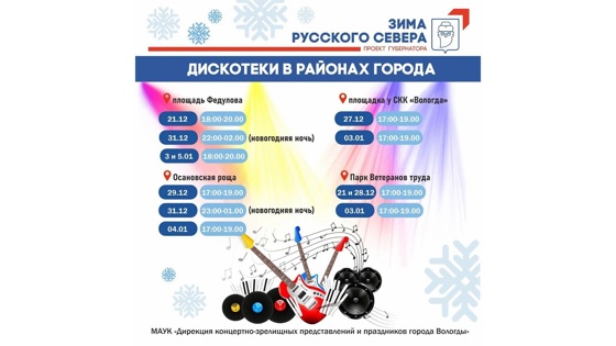 Праздничные дискотеки пройдут в разных районах Вологды (0+)