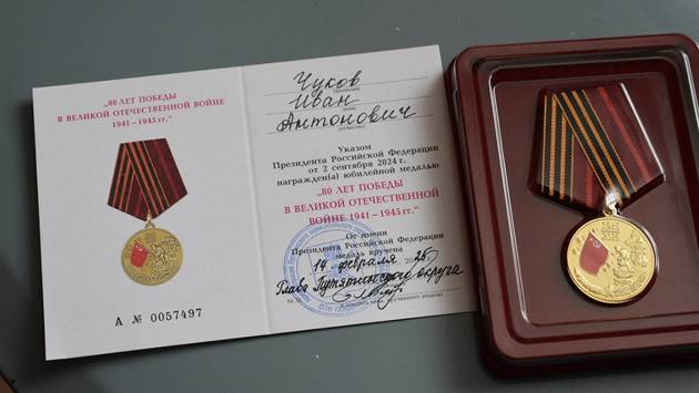 Труженику тыла Ивану Чукову вручили юбилейную медаль «80 лет Победы»