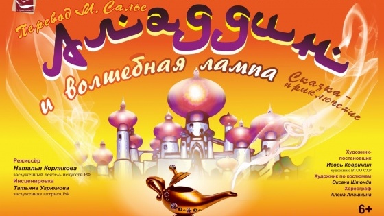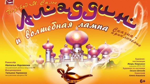 Спектакль-премьера «Аладдин и волшебная лампа» (6+) состоится 22 февраля в 11:00 и 17:00, а также 23 февраля в 11:00.