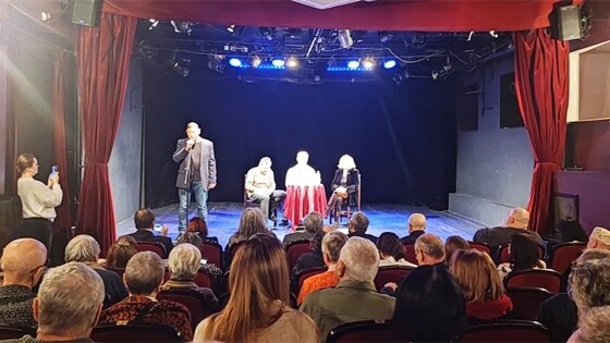 Главный редактор журнала Андрей Василевский, состоящий в этой должности 27 лет, уведомил об идее юбилейного года и о планирующихся мероприятиях на разных литературных площадках, за исключением "Дома Ростовых", где недавно была закрыта "по историческим причинам" АСПИР – писательская ассоциация. Также главный редактор объявил о грядущем переезде редакции журнала в новое помещение: из Малого Путинковского переулка в район Патриарших прудов. Дмитрий Бак и Андрей Василевский (сидит). Журнал, выпускающий с 1925 по 2025 год – вдумайтесь, ежемесячно в течение ста лет номер за номером качественной, содержательной литературы! – заслуживает восхищения своей целеустремлённостью, упорством, жизнестойкостью. Юбилейная отметка "сто лет" будет отличать каждый текущий выпуск 2025 года. С момента основания журнала его главными редакторами были: Луначарский, Симонов, Твардовский, Наровчатов. И каждый выступающий на сегодняшнем вечере вспоминал свою историю с главредами, с трудностями публикаций, ухищрениями редакторов и даже мистикой. Павел Крючков Озвученная нынешним главредом новость об отсутствии праздничного банкета и фуршета заставляла ораторов, выходивших к микрофону, довольствоваться водой. Но вода, видимо, оказалась особенной, потому что буквально каждый просил налить стакан воды и со стаканом в руках уходил со сцены. Даже если мероприятие обеспечивал водой "Булгаковский Дом", то, вероятно, она была заряжена журнальными ионами добра, благотворности и чистоты. Журналу можно бутилировать воду и патентовать свою марку: "НовоМирская, сто лет качества". Дальнейший разговор после животворящей воды повёлся так, что ораторы называли свой авторский или редакторский возраст (не хочется произносить срок) сотрудничества с журналом "Новый Мир". Победителем тут оказался писатель, профессор Литературного института имени А. М. Горького Руслан Киреев – 60 лет с НМ; литературовед, поэт Дмитрий Бак – 40 лет с НМ; прозаик Владимир Березин – 30 лет с НМ; поэт, издатель Максим Амелин – 28 лет с НМ; Роман Сенчин –25 лет с НМ (по словам редакции). Владимир Березин О своей неразрывной связи с журналом говорили и заведующие отделами поэзии и прозы Павел Крючков и Ольга Новикова – работающие в НМ около 25-ти лет, а также Алексей Алёхин – главный редактор журнала "Арион" , Владимир Новиков – критик, прозаик и читавшие стихи поэты Ирина Ермакова, Виктор Куллэ, Ольга Сульчинская. Эту же связь с журналом подтверждало и присутствие на вечере коллег, знаменитых "Знаменцев" – Сергея Чупринина, Натальи Ивановой, Елены Холмогоровой, коллег из журнала "Дружба народов" – не менее знаменитых Сергея Надеева и Галины Климовой, а также поэта Геннадия Калашникова, писателя Елены Долгопят, журналиста и критика Михаила Визеля, главного редактора журнала Литеrrатура Натальи Поляковой, поэта Данилы Файзова, поэта, культуртрегера Юрия Цветкова и многих-многих, считавших причиной присутствия на этом вечере свою личную авторскую или читательскую причастность к журналу. Виктор Куллэ Кто-то из присутствовавших очень точно сказал про новомировский контент – "состав литературного времени". Вот и первое юбилейное мероприятие из юбилейного журнального года показало тот самый состав литературного времени в один момент в одном отдельно взятом зале. Среди поздравительных речей, воспоминаний,