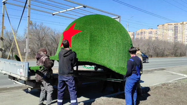 Сегодня на проспект Победы вернулась отреставрированная топиарная фигура — Солдатская каска. Это символический памятник Великой Отечественной войны в Оренбурге.