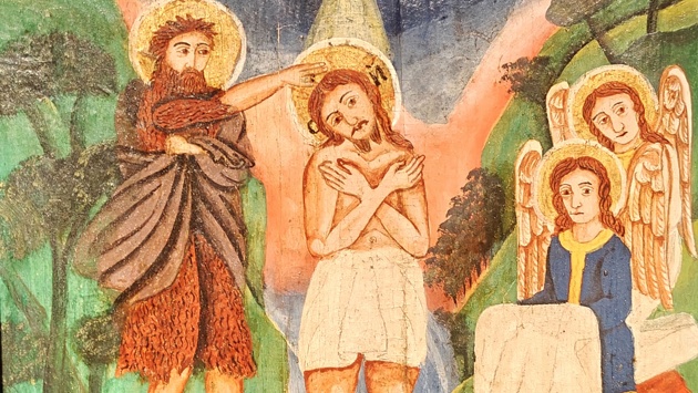 Экскурсоводы называют ее "милотой". Всматриваемся - у Христа крестообразно сложены руки, а голова склонена влево, Иоанн Предтеча трогательно прижал к себе одеяния Христа, ангелы держат плат, святой дух почему-то больше напоминает ворона, чем голубя, и кругом кущи пышных дерев и кустарников, все яркое и радостное. Никаких поводов для печали, только - умиление.