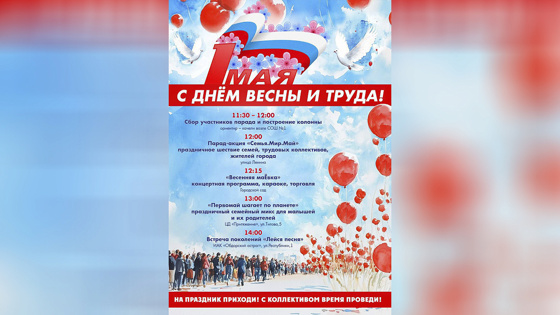 Сбор участников начнётся в 11:30 у качелей возле школы №1. Горожан просят взять с собой шары, флажки, цветы и другую праздничную атрибутику.