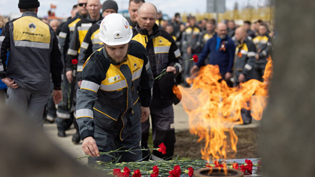 Более 600 человек - сотрудники дочерних обществ "Роснефти" и подрядных организаций - приняли участие в автопробеге, открытии мемориала "Огонь Памяти", смотре-конкурсе "Лучший по профессии" и праздничных концертах.