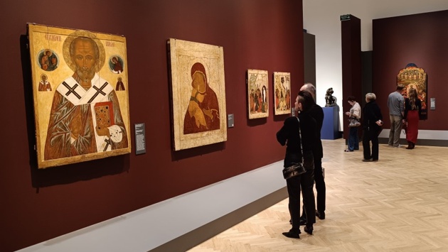 На входе гостей сразу встречают шедевры русской иконописи, в числе которых - Образ великомученика Георгия, олицетворяющий победу добра над злом. Его дополняет Владимирская икона Богоматери, восходящая к византийским образцам XII века.