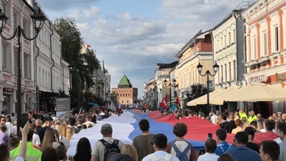 Тысячи нижегородцев прошли с гигантским флагом по Большой Покровской