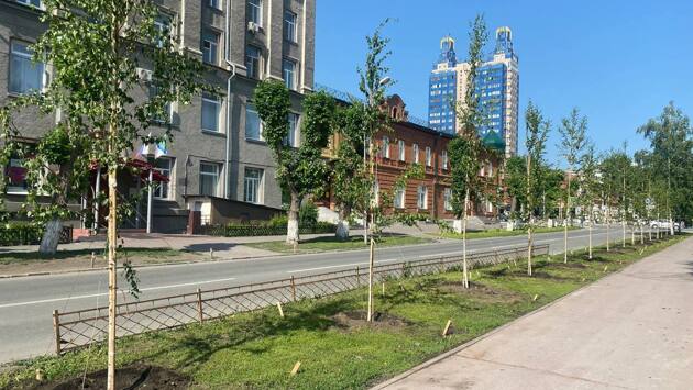 На улице Свердлова в Новосибирске высадили 22 берёзы