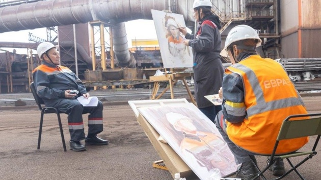 Перед началом творческого пленэра они побывали в подразделениях комбината и выбрали места для создания картин: доменный, конвертерный, колесобандажный цехи и цех прокатки широкополочных балок.