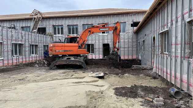 Параллельно капитальный ремонт проходит в Розовской школе. Здесь задействованы 62 специалиста и 11 единиц строительной техники. Готовность объекта на сегодняшний день составляет 68%. Ведутся работы по устройству бетонной основы под полы, установке металлических конструкций для гипсокартонных перегородок, возведению стен и монтажу стропильной системы крыши. Также проводится обработка деревянных элементов специальными защитными составами и регулярно вывозится строительный мусор.