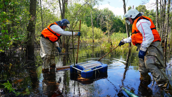 4 июля подрядчик начал ликвидировать нефтяное пятно. Сначала сотрудники «Дорожного ремонтно-эксплуатационного управления» отсыпали на берегу реки площадку и уложили дорожные плиты, чтобы к водоёму могла подъехать техника.