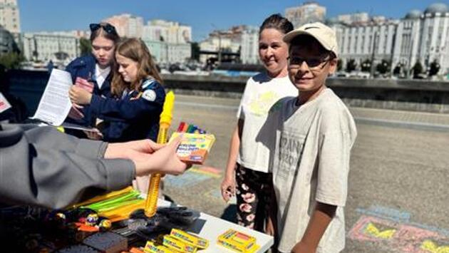 Все желающие на железнодорожном вокзале могли принять участие в традиционной акции "Поезд, объединяющий страну, — самый длинный нарисованный на асфальте поезд", а также в конкурсах и развлекательной программе.