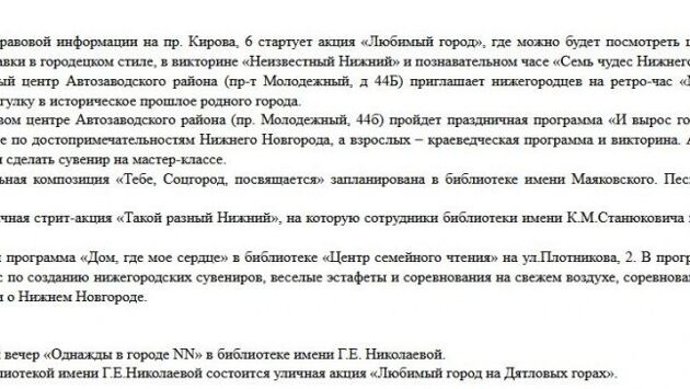 Также праздничные площадки будут работать в парках «Швейцария, Автозаводском и имени 1 Мая. О том, какие мероприятия пройдут в библиотеках и музеях города, смотрите в карточках: