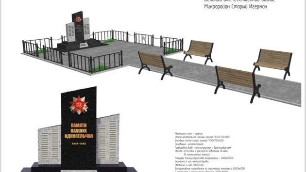 На стелах будут выгравированы имена участников войны. Также у мемориала установят скамейки, цветники и урны.