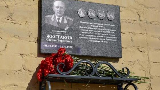 <p style="text-align:justify">В городе Щигры по инициативе врио губернатора Курской области Александра Хинштейна открыта мемориальная доска в честь участника Второй мировой войны, генерал-майора Степана Борисовича Жестакова. Памятное мероприятие состоялось в канун Дня окончания Второй мировой войны.</p> <p style="text-align:justify">В 1941 году Степан Борисович занимал должность начальника штаба 106-го Полтавского укрепленного района 25-й армии Дальневосточного фронта, а с июля 1942 года командовал 190-й стрелковой дивизией 2-го формирования. Под его руководством штурмовые подразделения внезапной атакой прорвали оборону японцев в Дуннинском укрепрайоне — именно здесь произошло последнее сражение Второй мировой войны.</p> <p style="text-align:justify">Глава города Щигры Сергей Черников подчеркнул символичность выбора места для установки памятного знака:<br /> «Решение об установке мемориальной доски именно на здании военного комиссариата является глубоко символичным: это то самое место, откуда Степан Борисович начинал свой путь, уходя служить Отечеству. К сожалению, время стирает имена, и молодёжь не всегда знает, кому обязана своим мирным небом. Теперь, проходя мимо, они смогут узнать о человеке, жизнь которого стала примером мужества и верности долгу».</p> <p style="text-align:justify">Александр Хинштейн отметил, что имя генерала связывает Курскую область и Самарскую, где Жестаков жил после войны:<br /> «3 сентября 2021 года на Доме Красной Армии в Самаре была открыта мемориальная доска Степану Жестакову. Для меня особенно важно видеть, что память о таких людях объединяет регионы. Это пример подлинной преемственности и уважения к нашей общей истории».</p> <p style="text-align:justify">За проявленные мужество и героизм Степан Борисович Жестаков был награжден орденами Ленина, Красного Знамени, Суворова II степени, а также медалями «За победу над Германией» и «За победу над Японией».</p> <p style="text-align:justify">Фото: телеграм-канал "Курская область".</p>