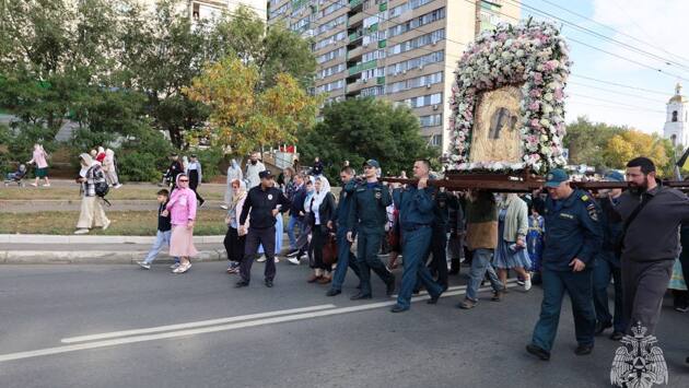 В областном центре сегодня прошел крестный ход с чтимой Табынской иконой Божьей Матери. Об этом сообщили в пресс-службе министерства региональной и информационной политики Оренбуржья. Верующие прошли 5 километров по улицам города, останавливаясь в знаковых местах: возле поклонного креста в парке у Дома советов, на улице Советской, напротив духовной семинарии и др.